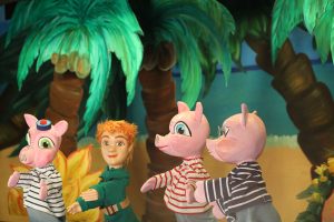 Les trois petits cochons ont décidé de tenter leur chance au soleil. Ils construisent ainsi leurs cabanes en bord de mer. On y rencontrera toutes sortes d’animaux : des toucans, des koalas, des perruches et aïe, aïe, aïe, un tigre qui se prend pour le loup !